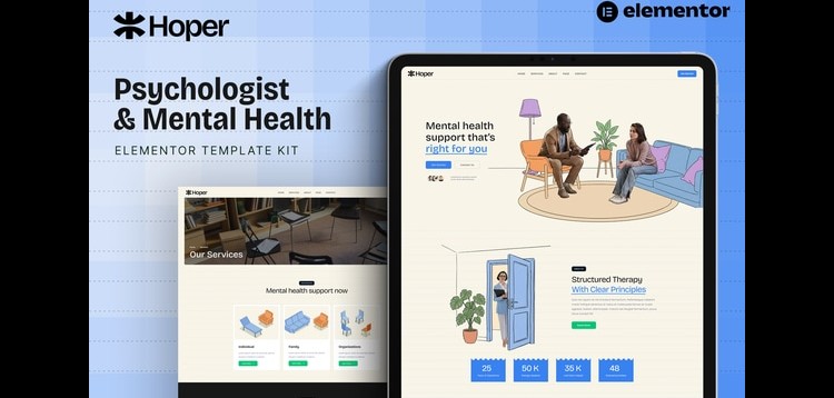 Hoper - Psychologist & Mental Health Elementor Template Kit