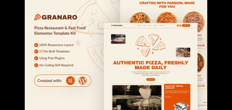 Granaro - Pizza Restaurant & Fast Food Elementor Template Kit