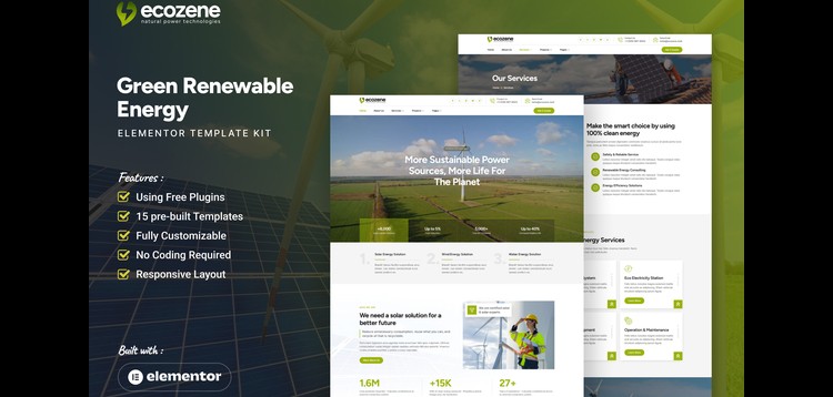 Ecozene - Green Renewable Energy Elementor Template Kit