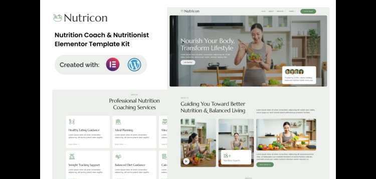 Nutricon - Nutrition Coach & Nutritionist Elementor Template Kit
