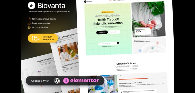 Biovanta – Pharmaceuticals & Biotechnology Industry Elementor Template Kit