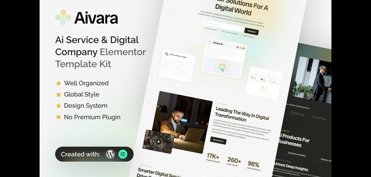 Aivara - AI Service & Digital Company Elementor Template Kit