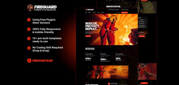 FireGuard - Firefighter & Fire Department Elementor Template Kit