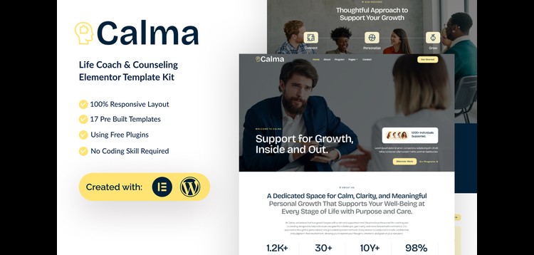Calma - Life Coach & Counseling Elementor Template Kit