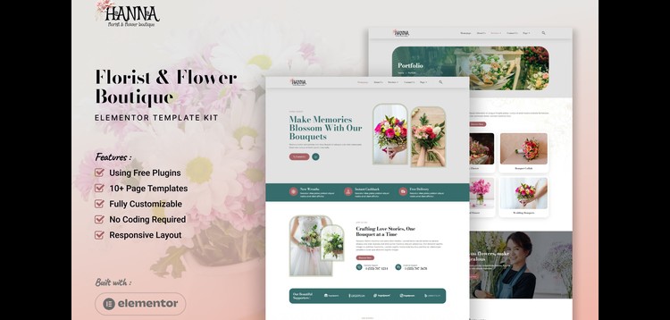 Hanna - Florist & Flower Boutique Elementor Template Kit