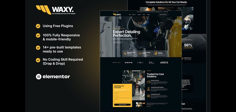 Waxy - Car Detailing Service & Car Repair Elementor Template Kit