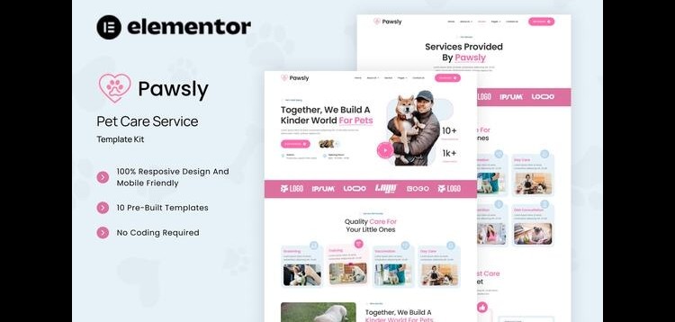 Pawsly - Pet Care Service Elementor Template Kit